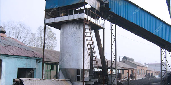 成型后的“水球”由皮帶機(jī)輸送到爐頂,由布料裝置均勻分布到爐頂全截面。在重力作用下向下流動(dòng),途徑烘干機(jī)內(nèi)的“角盒”換熱并翻身,濕球團(tuán)在其運(yùn)行軌道上一邊靠重力緩慢下 移一邊與強(qiáng)風(fēng)進(jìn)行熱交換。蒸發(fā)出的水分由強(qiáng)風(fēng)帶走。經(jīng)兩小時(shí)左右的蒸發(fā)過(guò)程達(dá)到充分干燥。球團(tuán)流至出料口排出烘干機(jī)。