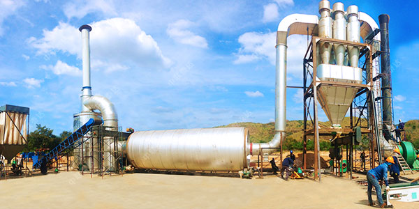 木薯渣烘干機(jī)主要由供熱源、進(jìn)料機(jī)、回轉(zhuǎn)滾筒、出料機(jī)、引風(fēng)機(jī)、卸料器和配電柜構(gòu)成;脫水后的濕木薯渣進(jìn)入木薯渣干燥機(jī)后,在滾筒內(nèi)均布的抄板翻動(dòng)下,在烘干機(jī)內(nèi)均勻分散與熱空氣充分接觸,加快了烘干傳熱﹑傳質(zhì)。在烘干過程中,木薯渣在帶有傾斜度的抄板和熱介質(zhì)的作用下,至烘干機(jī)另一段排出烘干成品。生產(chǎn)線的工藝參數(shù)和各設(shè)備技術(shù)參數(shù)及結(jié)構(gòu)的選取和設(shè)計(jì)是在經(jīng)過對木薯渣物料的認(rèn)真分析研究才得出,并經(jīng)過實(shí)際木薯渣烘干試驗(yàn)的驗(yàn)證。在方案設(shè)計(jì)當(dāng)中、充分考慮到木薯渣水分含量大、蛋白含量高、粘性大的特點(diǎn),并采取了一系列新技術(shù)和工藝來加以解決,以確保良好的烘干效果。
