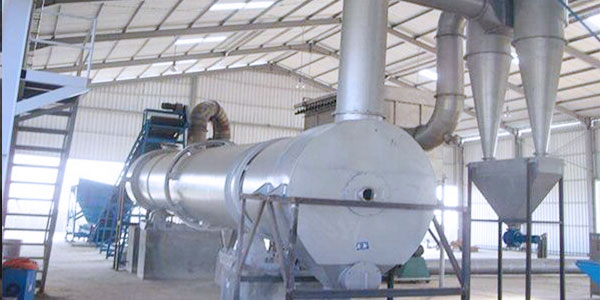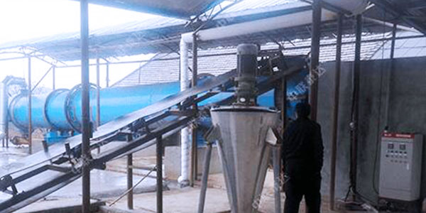 有機肥烘干機可將高達70%-80%含水量的禽畜糞便一次直接烘干至13%的安全貯藏水分,整個過程在封閉系統(tǒng)內(nèi)進行,從而減少干燥過程中對環(huán)境的污染。設(shè)備主要由熱源、上料機、進料機、回轉(zhuǎn)滾筒、出料機、物料破碎裝置、引風(fēng)機、卸料器和配電柜構(gòu)成;脫水后的濕物料加入干燥機后,在滾筒內(nèi)均布的抄板器翻動下,物料在干燥機內(nèi)均勻分散與熱空氣充分接觸,加快了干燥傳熱﹑傳質(zhì)。在干燥過程中,物料在帶有傾斜度的抄板和熱氣質(zhì)的作用下,至干燥機另一段星形卸料閥排出成品。